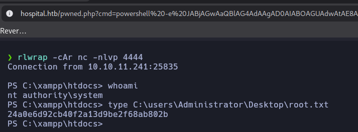 Bueno, podríamos hacer uso del mismo payload que se usó para crear el .eps para ganar acceso y con eso ya logramos ver la root.txt.
