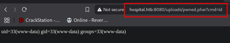Luego de probar diferentes extensiones para php, vemos que .phar es una de las que acepta y deja subir, sin embargo, si tratamos de usar el típico código en php para ejecutar comandos haciendo uso de funciones como shell_exec, exec, passthru, vemos que no nos muestra los datos, entonces podemos asumir que tienes bloqueadas ciertas funciones, pero podemos hacer uso del siguiente código.
