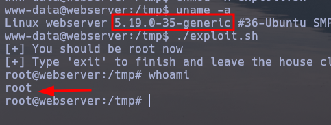 En el directorio donde se encuentra el servicio web, hay un config.php el cual tiene credenciales para conectarse a una base de datos, pero con dichas credenciales no llegamos a nada relevante. Si vemos por la versión del kernel que está en uso y buscamos algo referente dicha versión, nos econtramos con un exploit GameOver(lay) Ubuntu Privilege Escalation. Apoyandonos en esto, logramos escalar nuestros privilegios y convertirnos en root.